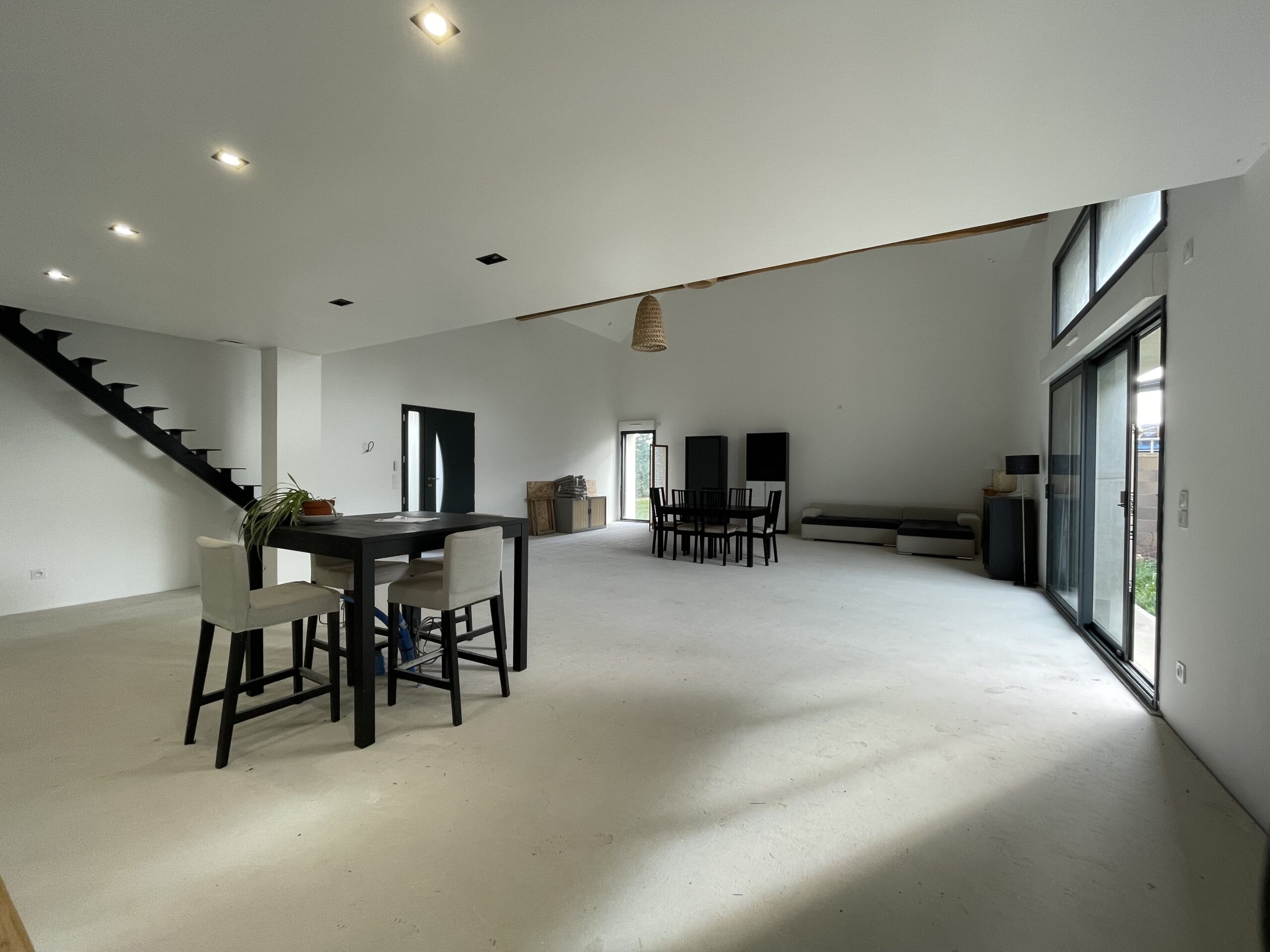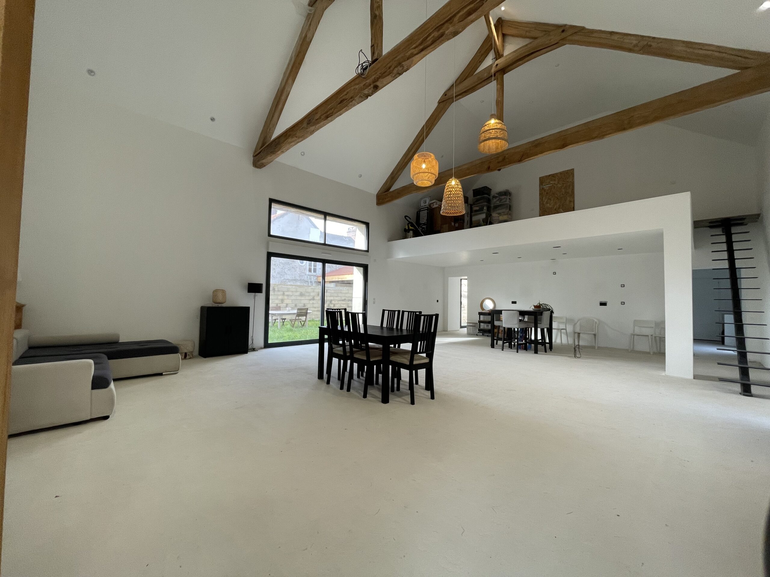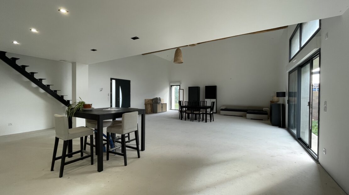 Dès l’entrée, le regard est attiré par une pièce de vie exceptionnelle de 85 m², sublimée par un séjour cathédrale de 8 mètres de hauteur.