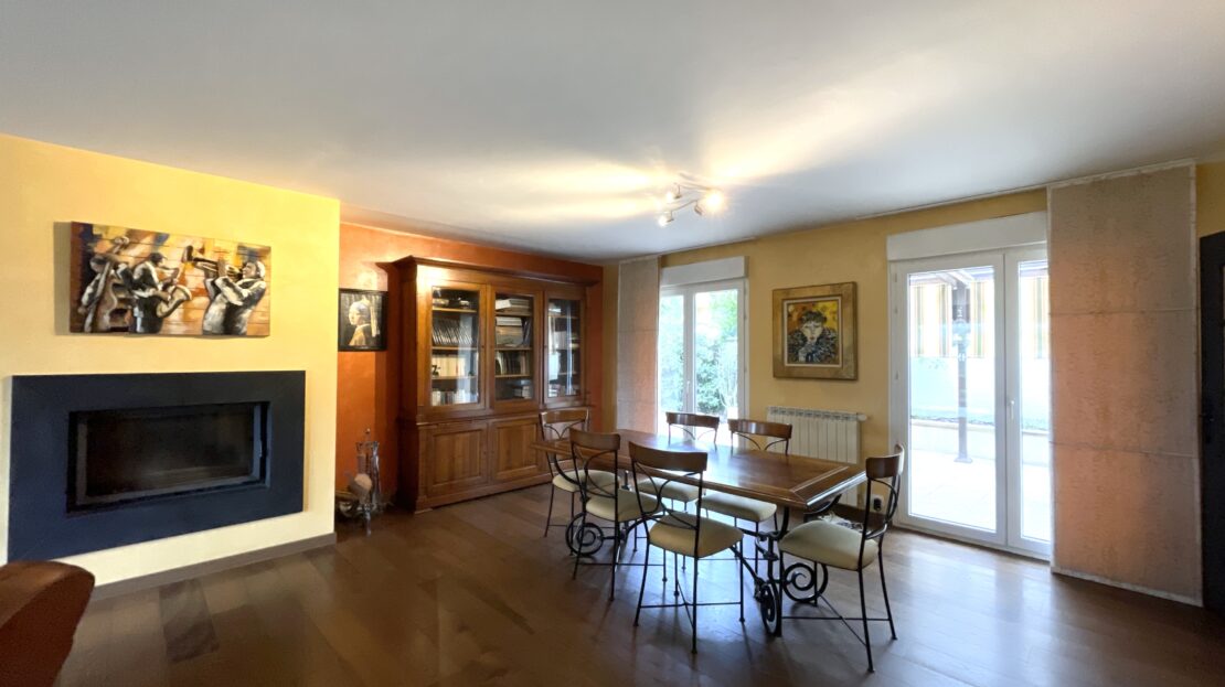 Un rez-de-chaussée lumineux et très fonctionnel. La pièce de vie, particulièrement spacieuse, se compose d’un salon lumineux, d’une salle à manger ouverte sur la terrasse grâce à ses grandes baies vitrées, et d’une cheminée à insert qui apporte chaleur et convivialité.